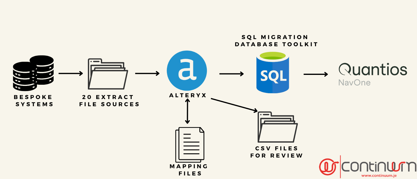 Our client is a trust company rapidly growing by acquisition, and in each previous case used Alteryx to perform the all important data migrations to their Quantios NavOne database.