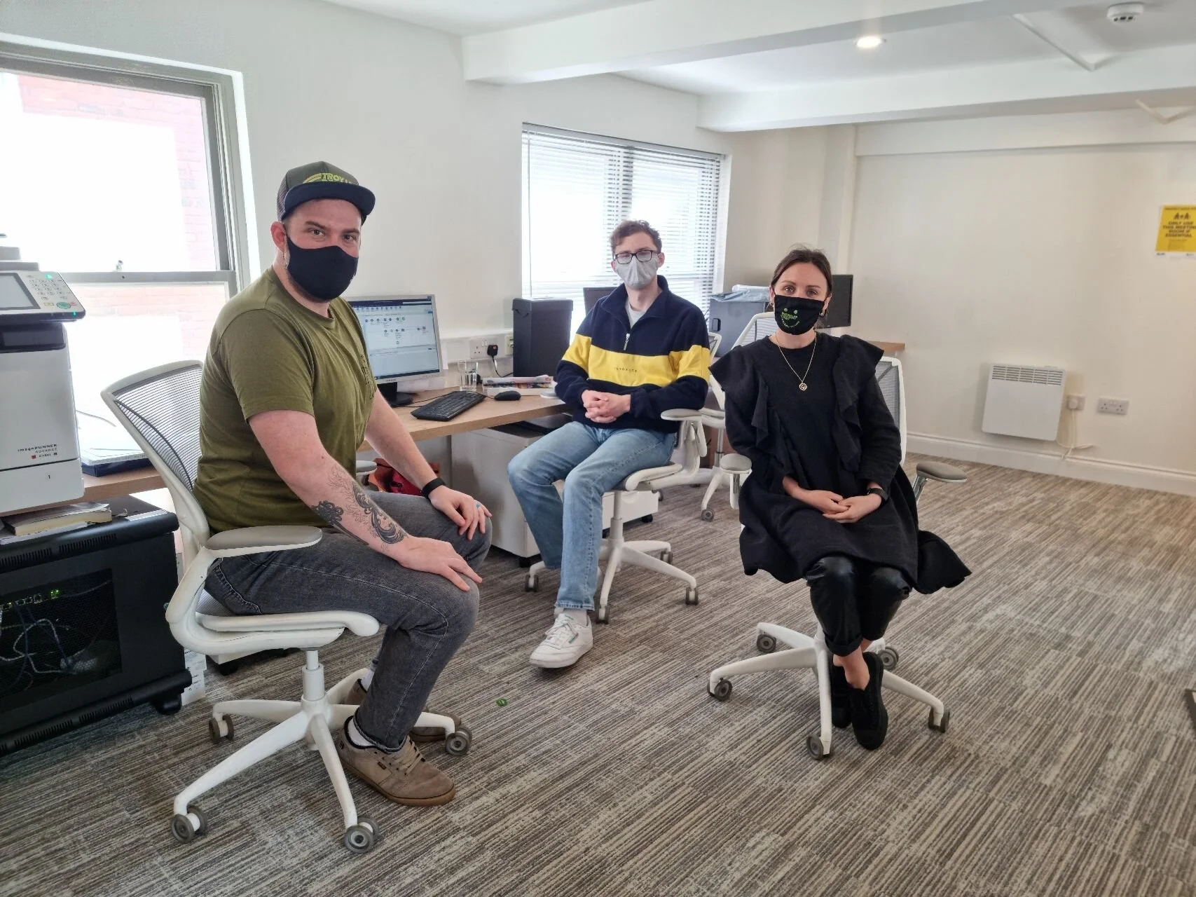 MacMillan Jersey Operations and Communications Manager Kevin Alway, Continuum Consultant George, and MacMillan Jersey Head of Operations and Income Generation Stephanie Gibaut during one of their Alteryx development sessions.
